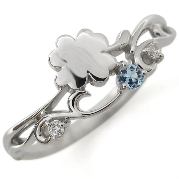 クローバーリング アクアマリンサンタマリア ファランジリング ピンキーリング 四葉 指輪