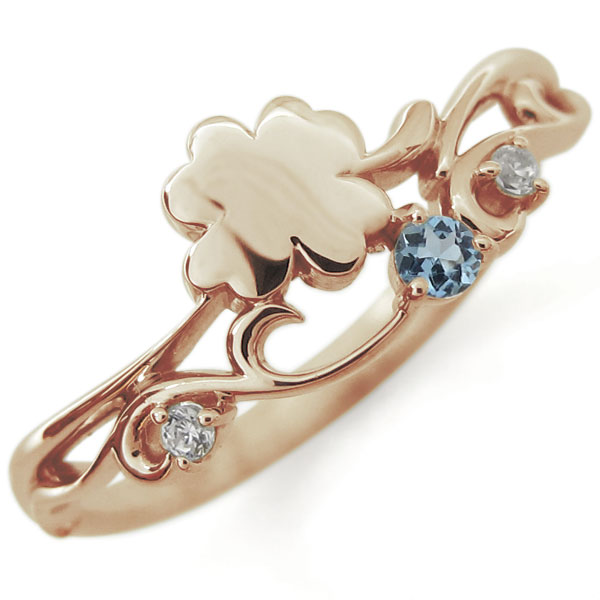 ![]() 3月誕生石アクアマリンサンタマリアを一粒使用した、 10金製の唐草&クローバーモチーフリング(指輪)です。 「幸運を呼ぶ」という言い伝えがある四つ葉のクローバー、洗練されたアラベスク(唐草)デザインが、 愛らしくあなたの指元で輝きます。 リングサイズ1号から選択頂けますので、ピンキーリングやファランジリングにもお勧めの指輪です。