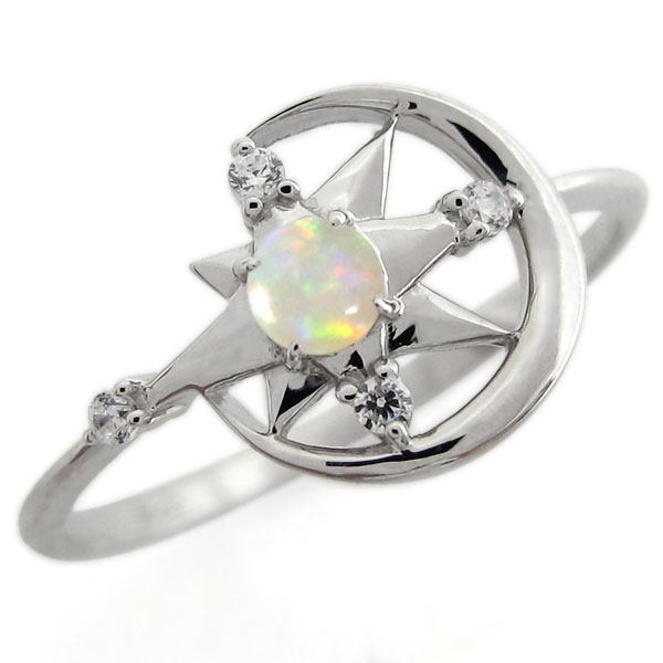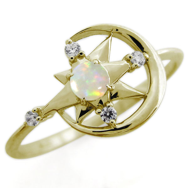 オパール・星・月・モチーフ・リング・スター・指輪・K10