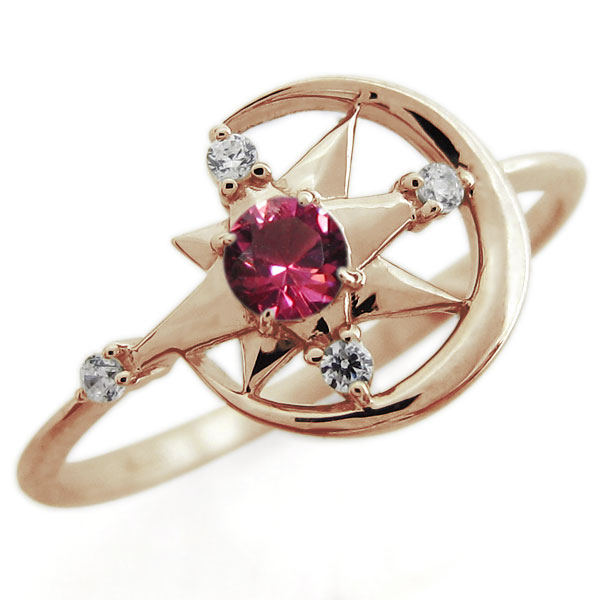 ![]() 7月誕生石ルビーを使用した、18金製の三日月(ムーン)星(スター)モチーフリング(指輪)です。 煌めく天然石の星が、艶やかに光る月に寄り添った可愛らしいリングです。