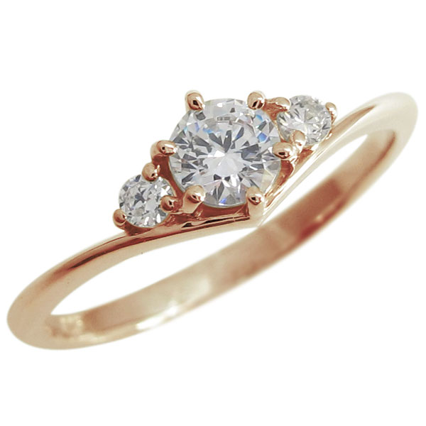 ダイヤモンド V字 エンゲージ シンプル 婚約指輪 K18