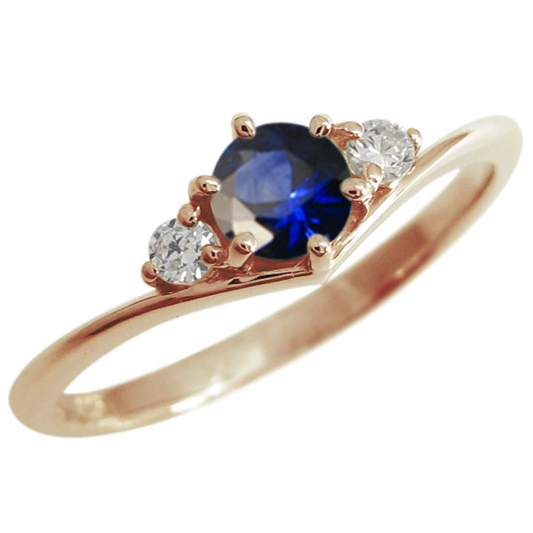 9月誕生石サファイアを使用した18金製の、V字デザインリング(指輪)です。