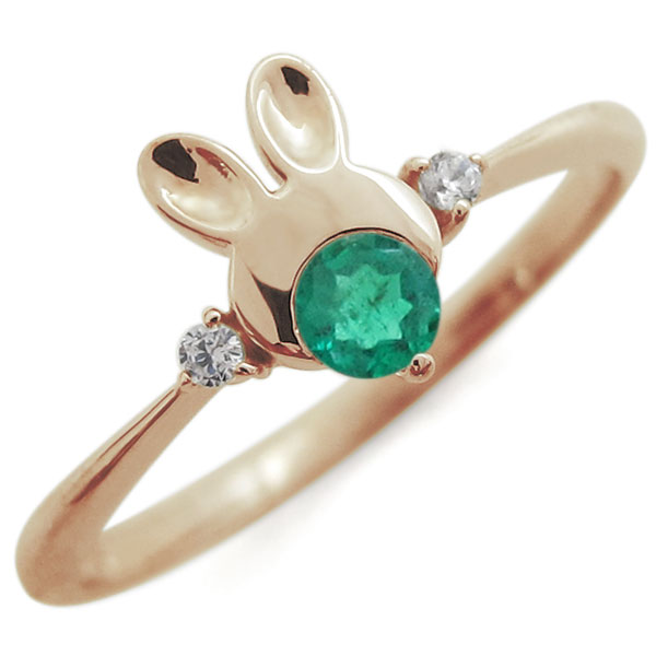 ![]() 5月誕生石エメラルドを使用した、18金製のうさぎ(ラビット)モチーフリング(指輪)です。 可愛らしいウサギモチーフに天然石が煌めく、大人の女性にぴったりの癒し系リングです。