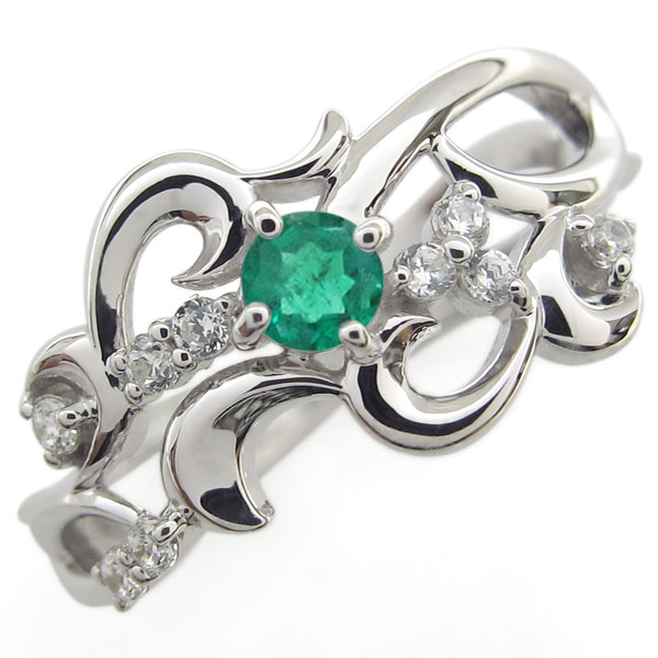 エメラルド 唐草 結婚記念日 リング メモリアルリング 指輪 10金