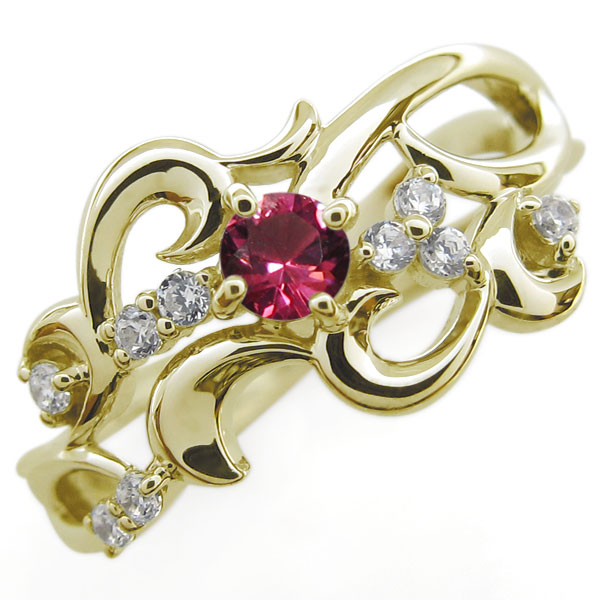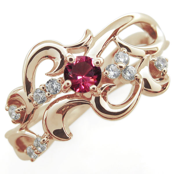 ルビー 唐草 結婚記念日 リング メモリアルリング 指輪 10金