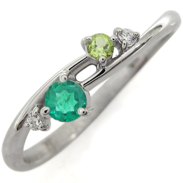 プラチナ シンプルリング エメラルドリング 上品 指輪