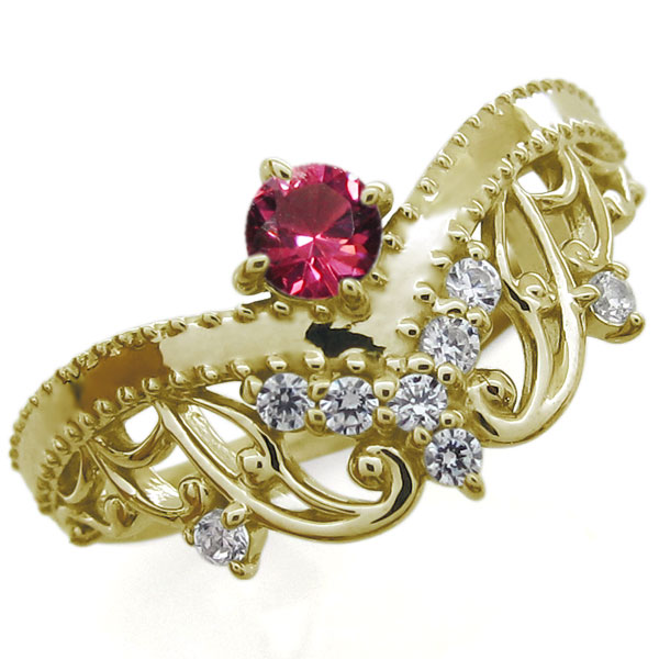 王冠リング・ピンキーリング・K18・ルビー・唐草・指輪