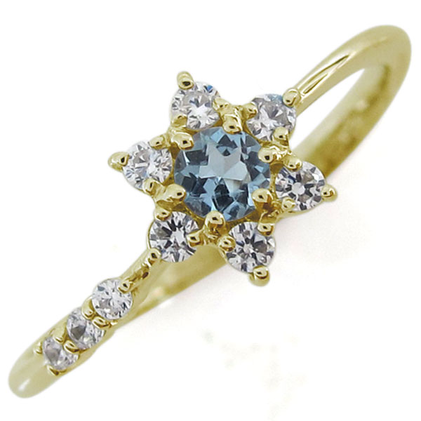 結婚10周年・アクアマリンサンタマリア・流れ星・指輪・ブライダルリング・10金