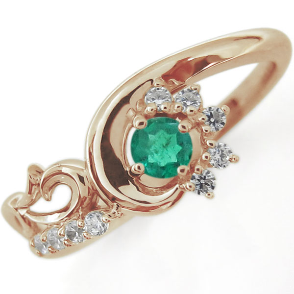 結婚10周年 ブライダルリング 唐草 指輪 エメラルド K10
