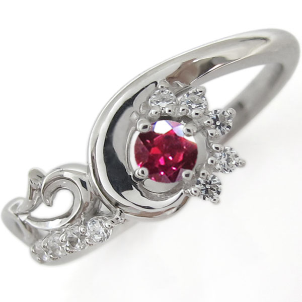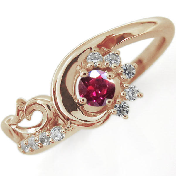 結婚記念日 ルビー メモリアルリング 唐草 指輪 18金