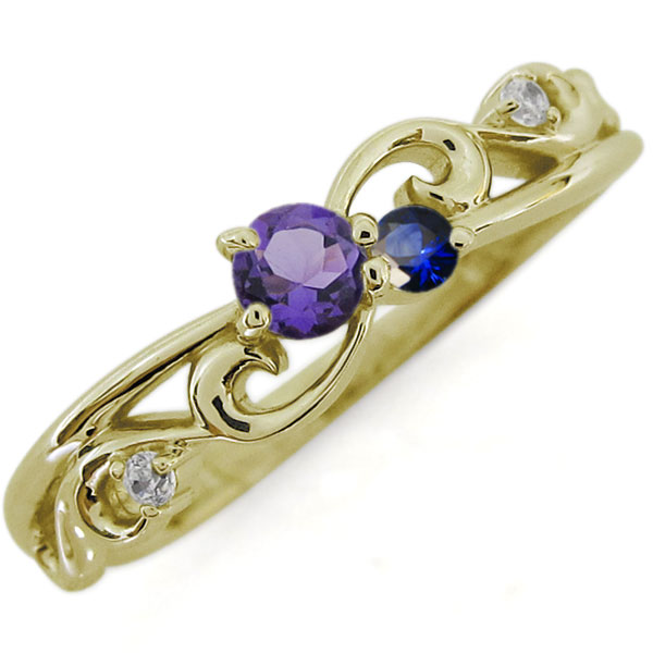 アメジスト 唐草 リング 10金 指輪 メモリアル リング