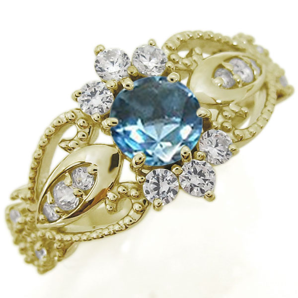 ![]() 11月誕生石ブルートパーズを一粒使用した、 18金製のアンティーク調ミル打ちデザインリング(指輪)です。 大粒の誕生石を取り巻くダイヤがゴージャスな、アンティークリング。 高級感のあるリングが貴方を輝かせてくれます。