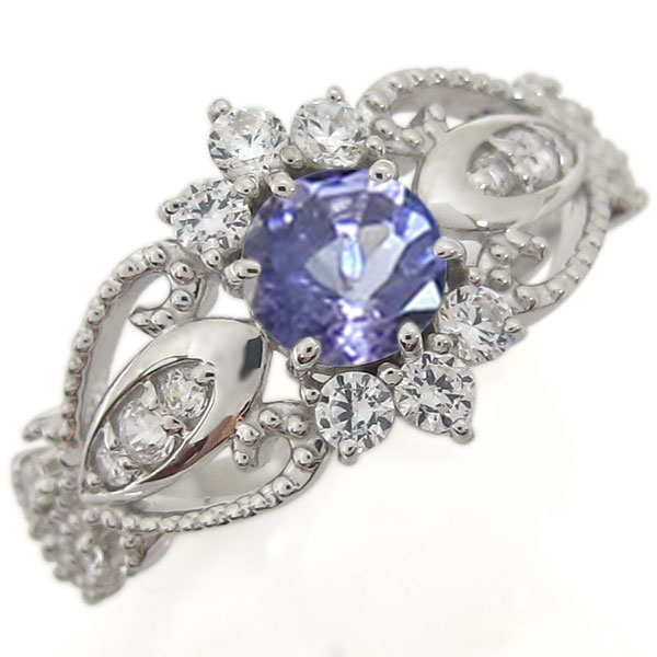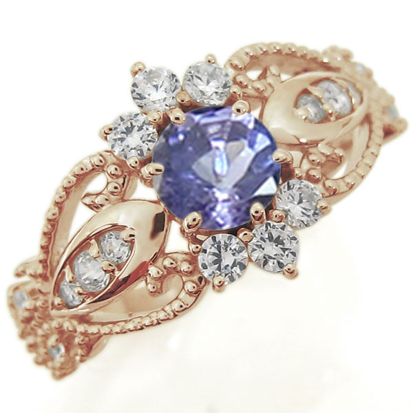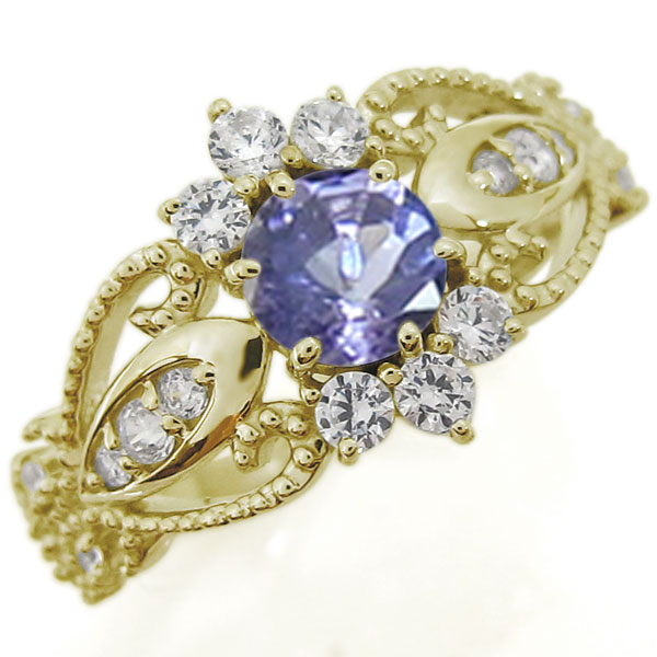 アンティーク調 タンザナイトリング ミル打ち 指輪 K18