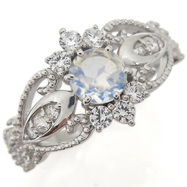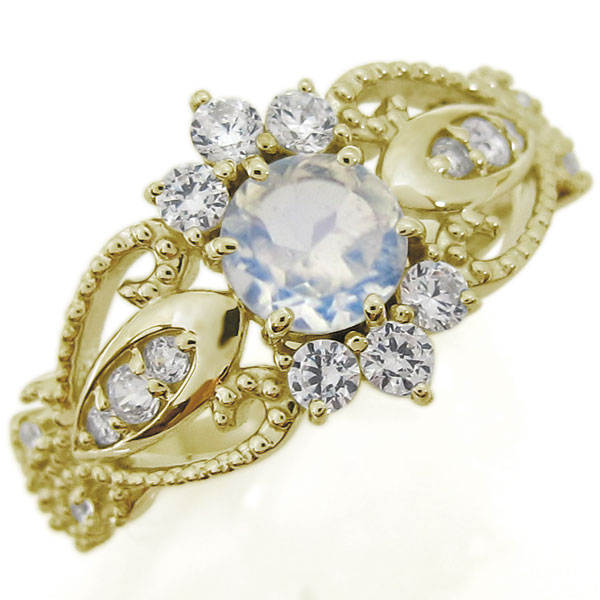 アンティーク調 ロイヤルブルームーンストーンリング ミル打ち 指輪 K18