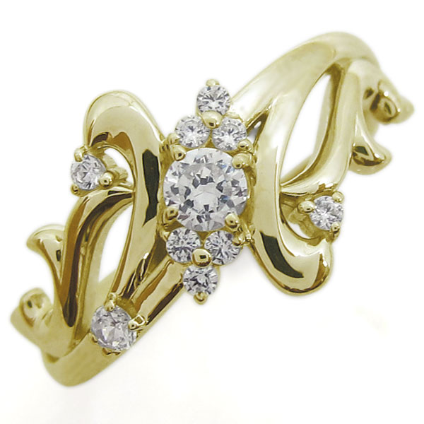 婚約指輪 ダイヤモンド 結婚10周年 唐草 エンゲージリング K10