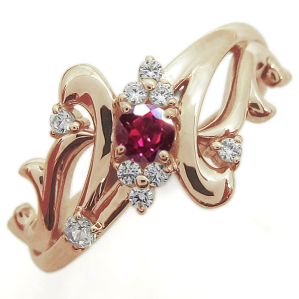 ルビーリング 結婚記念日 唐草 指輪 トライバルリング 10金