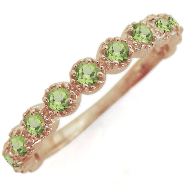 ハーフエタニティリング ペリドット 指輪 重ねづけリング K10
