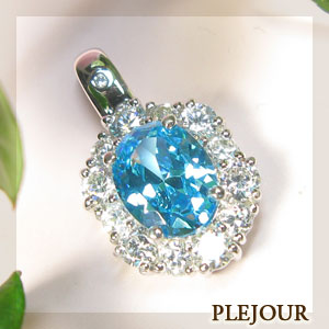 11月誕生石ブルートパーズを一粒使用したゴージャスデザインの18金製ダイヤモンド付きペンダントトップです