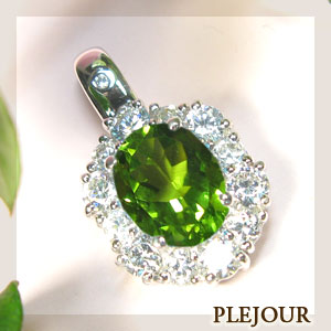 8月誕生石ペリドットを一粒使用したゴージャスデザインの18金製ダイヤモンド付きペンダントトップです。