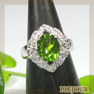 8月誕生石ペリドットを一粒使用したゴージャスデザインのプラチナ900製ダイヤモンド付きリングです。■本体素材: プラチナ【pt900】