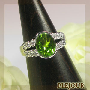 8月誕生石ペリドットを一粒使用したハーフエタニティタイプの