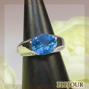 11月誕生石ブルートパーズを一粒使用したシンプルデザインの18金製ダイヤモンド付きリングです。