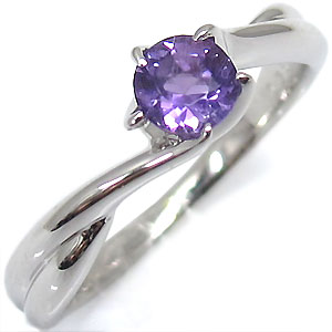 一粒・アメジスト・リング・18金・指輪・シンプル・アメジスト