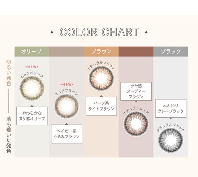 ■カラー:ナチュラルブラウン、ナチュラルヌード、ナチュラルブラック、ピュアブラウン、ピュアオリーブ