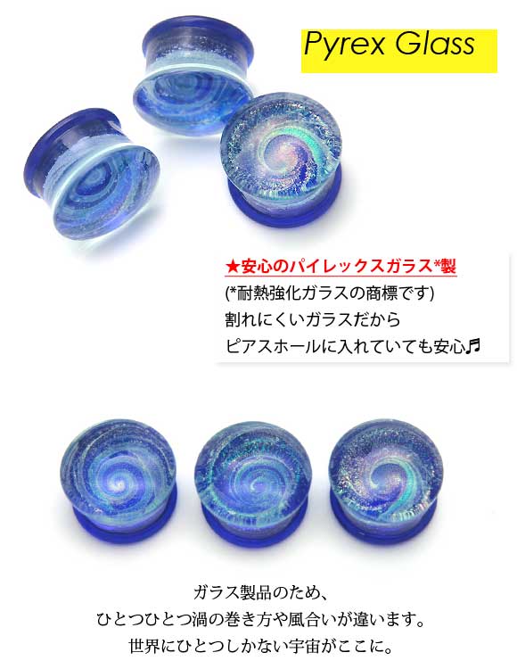 本日P2倍 16mm ピアス ボディピアス 宇宙 ガラス プラグ パイレックスガラス プラグ ダブルフレア アイレット 拡張 インチ