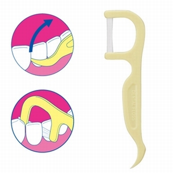 幅広状に並んだ糸が歯にしっかり密着して、歯と歯の間の歯垢や食べかすをふき取るように取り除きます。持ちやすさを追求した幅広グリップを採用しました。