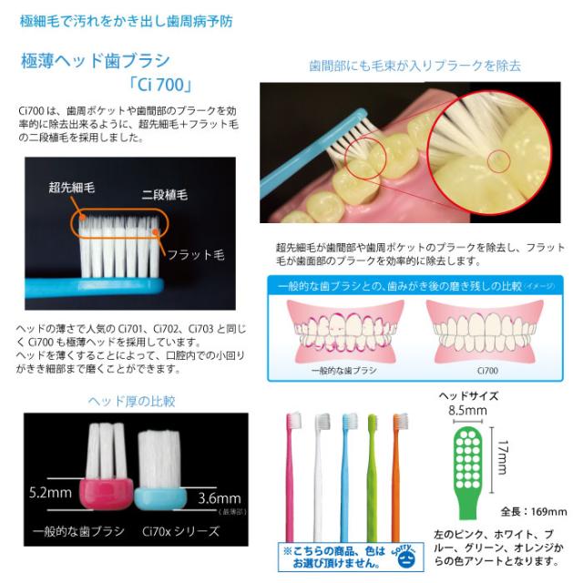 Ci 700 極薄ヘッド (超先細+ラウンド毛) Sやわらかめ 50本入【Ciメディカル 歯ブラシ】