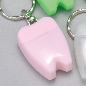 デンタルフロスがキーホルダーになりました♪携帯にも便利!本体サイズ:W26×D16×H38mmフロス長さ:10mワックス付き
