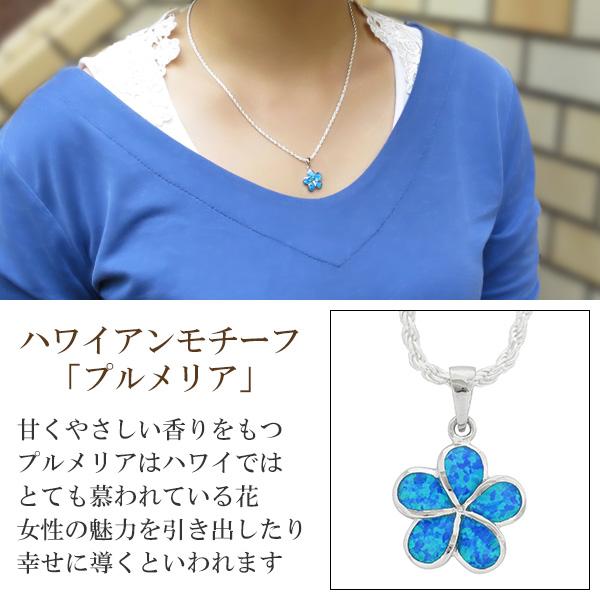 【ハワイアンジュエリー】プルメリアシンセティックオパール,シルバーネックレス