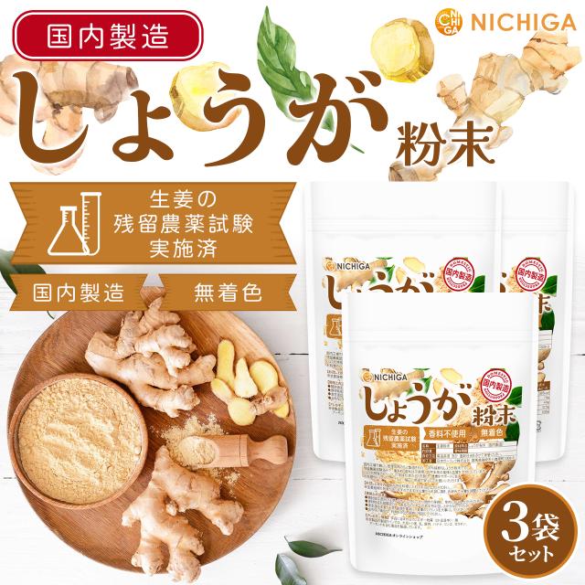 しょうが粉末(国内製造) 100g×3袋 国内粉末殺菌 着色料香料不使用 残留農薬試験実施済み ジンジャー【メール便専用品】【送料無料】[06] NICHIGA(ニチガ)
