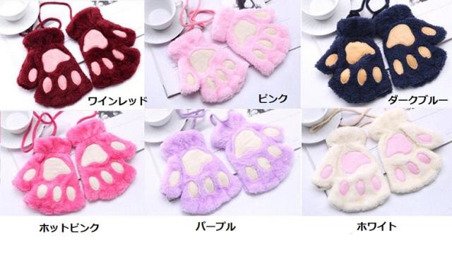 送料無料 新品 可愛い猫ちゃん 肉球手袋 ハーフフィンガー 暖かい 手袋 選べる11色