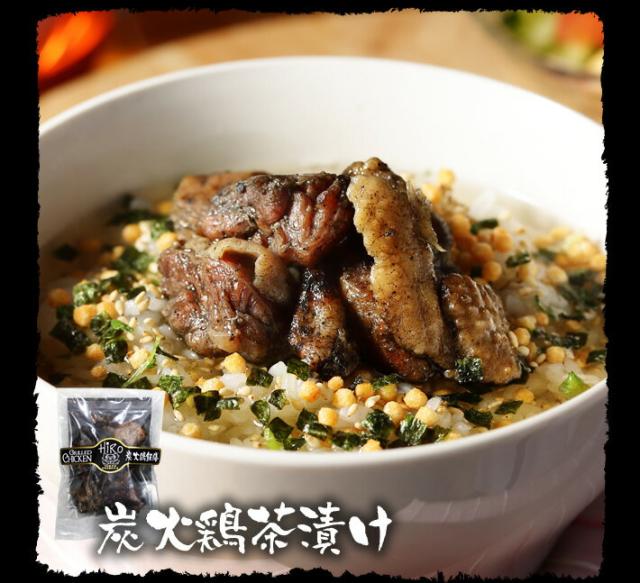 温かいご飯の上に炭火鶏と具材をのせ、熱湯とだしつゆをかけて召し上がりください。お好みにより熱湯の量は加減して下さい。わさびを添えるなどお好みに合わせて工夫して頂きますと、一層美味しく召し上がり頂けます。【炭火鶏めし(炊き込みごはん)として】