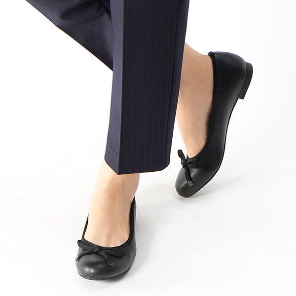 足馴染みが良く、長時間履いていても疲れにくいベーシックなデザインのリボンバレエパンプスです。
