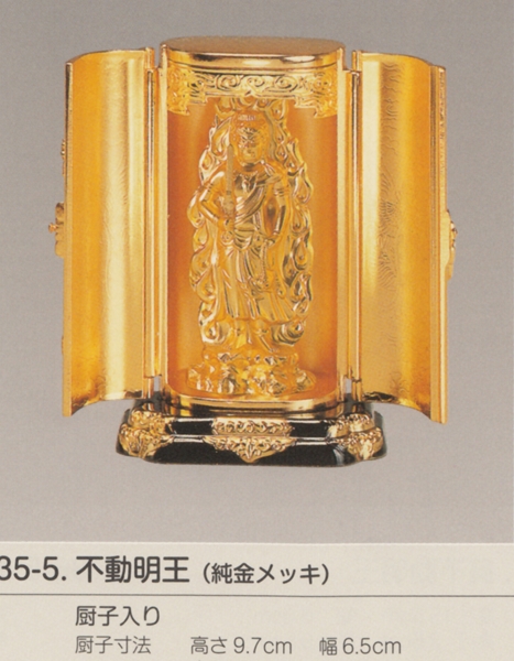 国産高岡仏具・不動明王7.5cm厨子入り純金メッキ