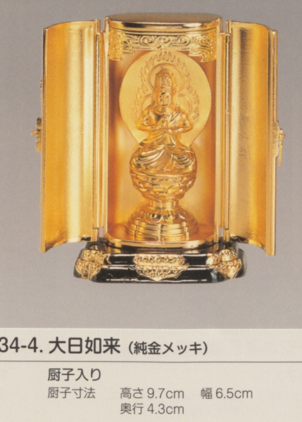 国産高岡仏具・大日如来6.8cm厨子入り純金メッキ