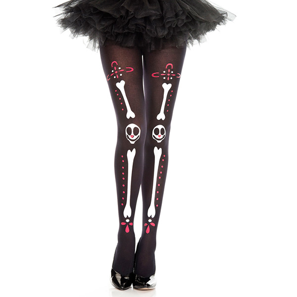 ハロウィンシーズンにぴったりなボーン×スマイルスカルプリントデザインの個性的なパンティストッキング♪