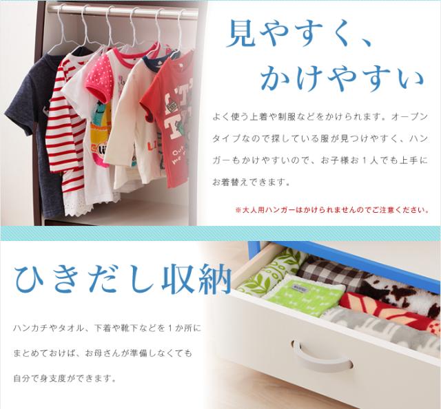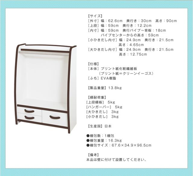日本製 完成品 ハンガーラック ワイドタイプ 幅63 収納 コート 制服 EVA 白 キッズハンガー 引き出し付き 引き出し 押入れ 片付け(代引不可)【送料無料】