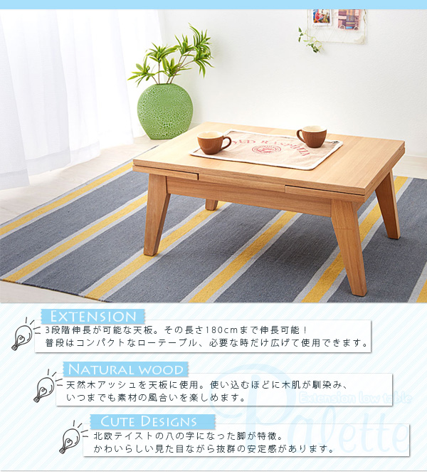 伸縮式リビングテーブル 伸縮式テーブル 伸縮テーブル リビングテーブル センターテーブル 木製 エクステンション 北欧 ミッドセンチュリー おしゃれ Paletteパレット Palette パレット (W120-180)(代引不可)【送料無料】