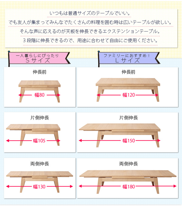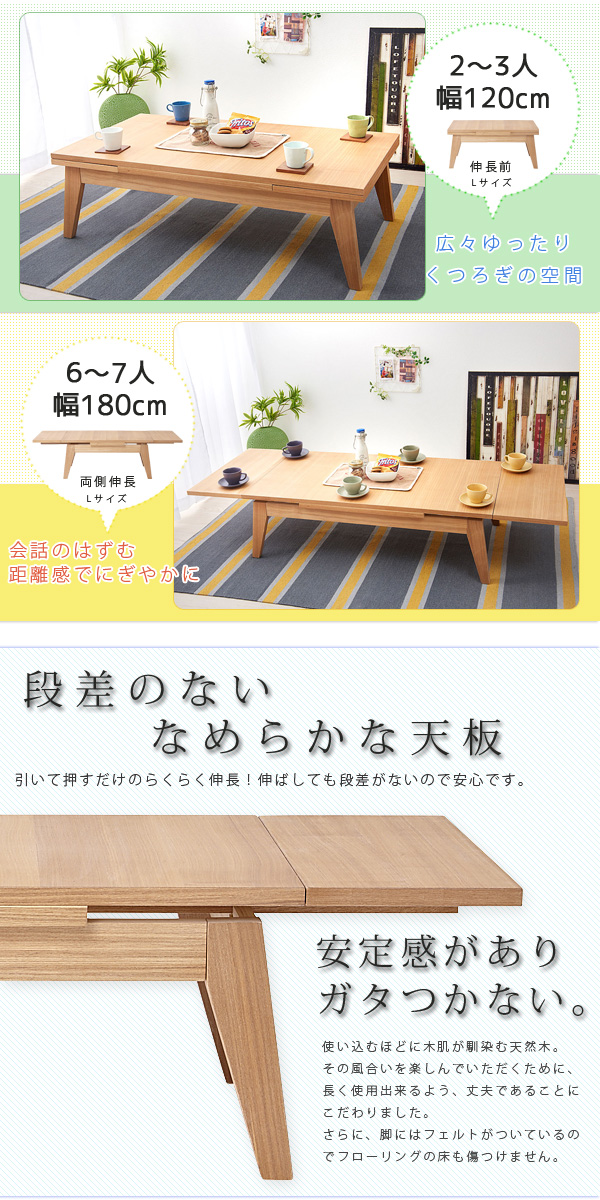 リビングテーブル 120-180cm【サイズ(幅×奥行き×高さcm)】