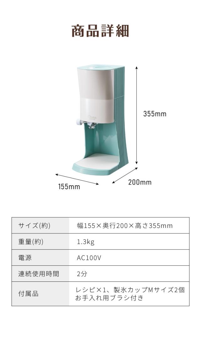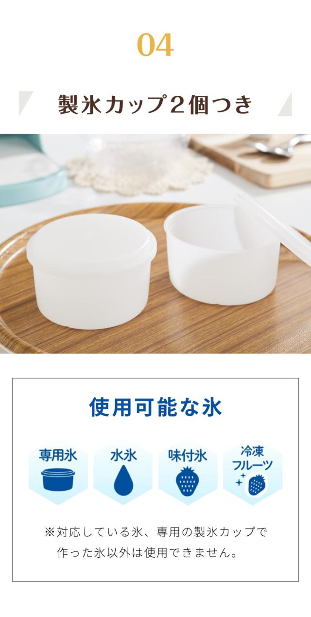 ・付属品: 製氷カップMサイズ×2個、レシピ、お手入れ用ブラシ