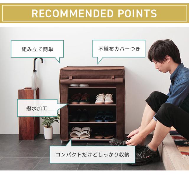 シューズラック 4段 スリム 幅60cm 省スペース 最大12足 不織布カバー付 撥水 軽量 可動棚 薄型 シューズボックス 下駄箱 靴入れ 玄関収納