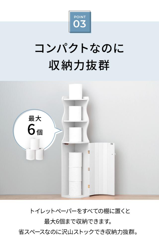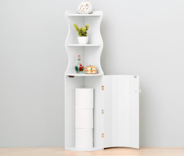 コーナーのデッドスペースを活用できる省スペース収納トイレラック。