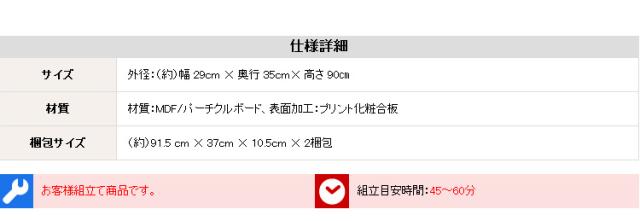 (1個あたり)外寸:(約)幅29x奥行き35x高さ90cm ※商品重量:(約)14kg