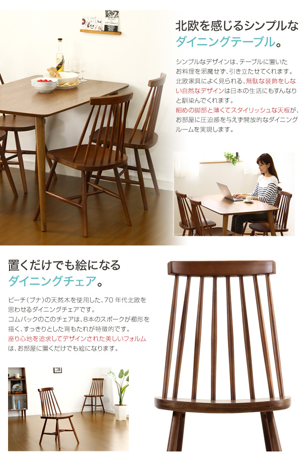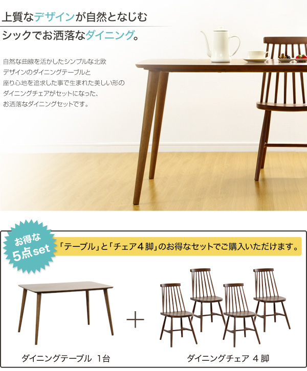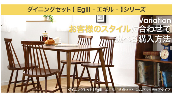ダイニングセット【Egill -エギル-】5点セット(コムバックチェアタイプ)
