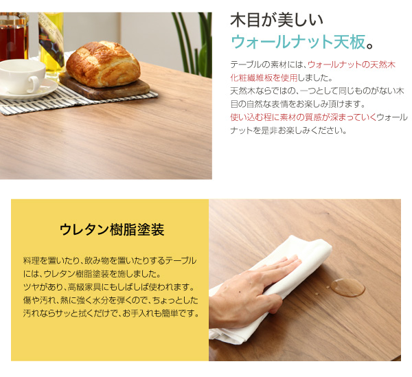 テーブル:天然木化粧繊維板(ウォールナット)、ウレタン樹脂塗装