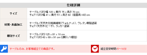 ・梱包重量:テーブル(約)17.5kg チェア(約)10kg
